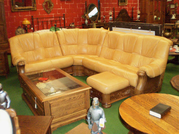 N-0097 Sofa rinconera en piel y madera de roble (diferentes colores y tonos de madera)